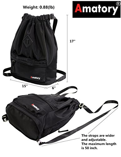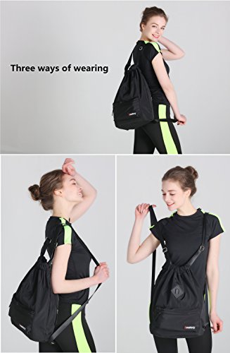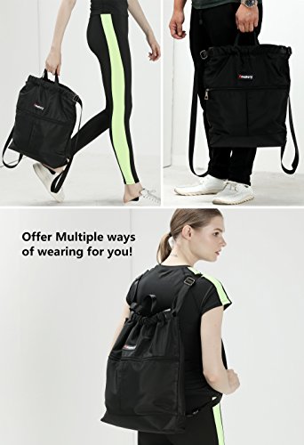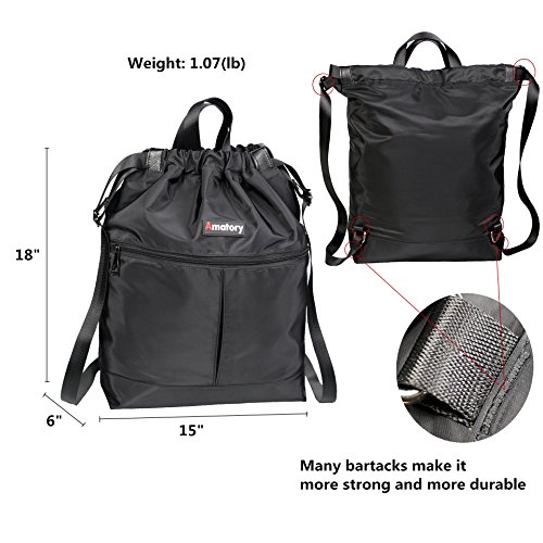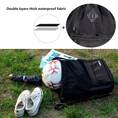 Gym Drawstring Backpack Bags String Sackpack Waterproof Gymsack Cinch Sack (Black)