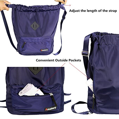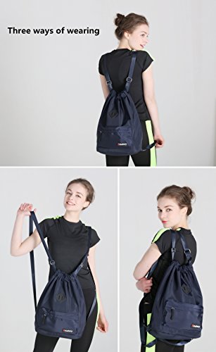Gym Drawstring Backpack Bags String Sackpack Waterproof Gymsack Cinch Sack (Blue)