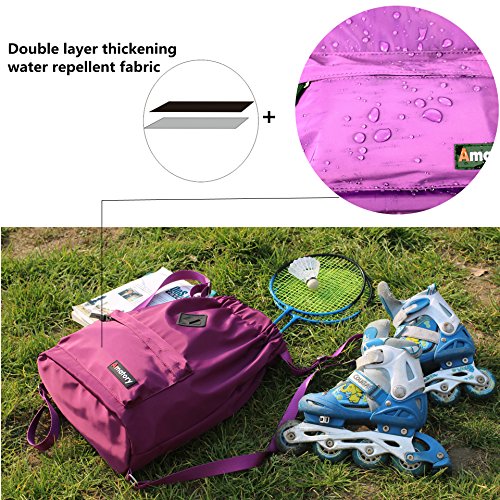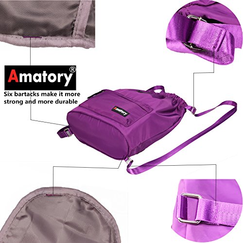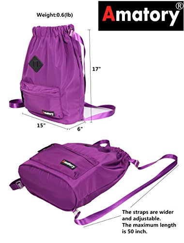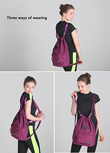 Gym Drawstring Backpack Bags String Sackpack Waterproof Gymsack Cinch Sack (Purple)