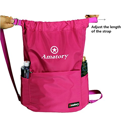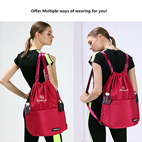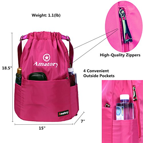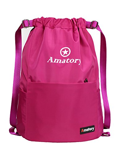 Gym Drawstring Backpack Bags String Sackpack Waterproof Gymsack Cinch Sack (Rose)