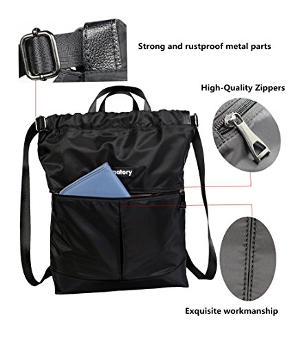 Gym Drawstring Backpack Bags String Sackpack Waterproof Gymsack Cinch Sack (Tote-Black)