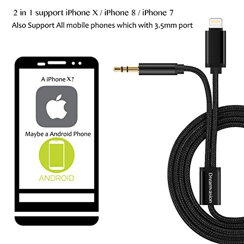 Dreamvasion 2 in 1 iPhone 8 aux cable is desiged for iPhone / iPad / iPod / Android smartphone / MP4 for audio transmission, it allows you to connect your iOS / Android device to your car stereo / home speaker / Hi-Fi and more stereo that with 3.5mm audio port, you can feel free to enjoy your music anywhere.