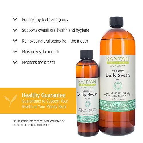 Banyan Botanicals Daily Swish, Mint, USDA Organic, 8 oz, Ayurvedic Oil Pulling Oil For Oral Health and Detoxification