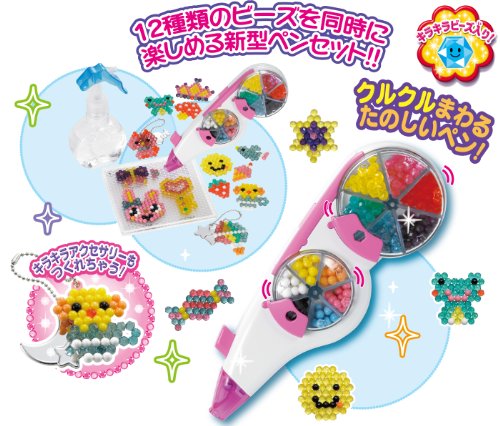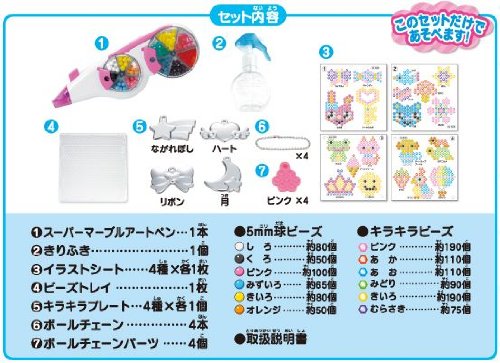 12종류의 비즈를 동시에 즐길 수 있는 신형 펜세트!! ★빙글빙글 돌았던 노시 있어 펜! ★보석같은 형태의 반짝반짝 투명 비즈 들어감.종래의 구형 비즈와도(모두) 들러붙는다!반짝반짝 악세사리 드는 오 ## 것이다! 【아쿠아 비즈 아트의 놀이 분(쪽,편)】 ●1●비즈 트레이로 슈퍼 마블 아트 펜을 사용해 늘어놓자 ●2●앞으로는만 닦고 수를 부과하는(끼얹는) 것 뿐(만,만큼) ●3●완성 ■크기팩키지:300(폭)×210(높음)×80(안쪽)mm ■대상 연령 6세 이상