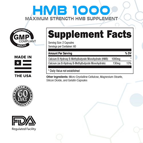 -. Title : Patented HMB 1000 Supplement - 1000mg per serving - Pure HMB Pills with 100% Moneyback Guarantee - 120 Caps