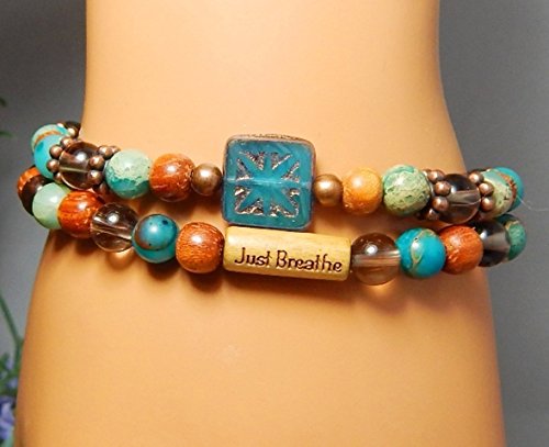 -. Title : CHOOSE YOUR WORD: Just Breathe, Strength, Journey, Love, Patience, Breathe, Namaste, Sister, Imagine. Blue and Brown Beaded Set of 2 Bracelets