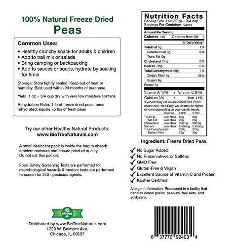Biotree Naturals Crunchy Delicious Peas - All Natural Freeze Dried Peas Snack: 100% Peas, Paleo, GMO Free, Gluten-Free, No Added Sugar, No...