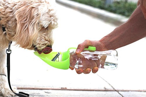 ThirstyPup Water Bottle for dogs and other pets is the perfect travel companion while on-the-go and walking your dog. The bottle is beautifully designed with a silicone leaf that folds over to create a perfect little bowl for your pup - no more mess! The foldable design and attached clip allow for easy storage, fitting on most backpacks, bikes, .cup holders, etc. We use only the very best materials to ensure that your pet is happy, healthy, and safe..This portable dog water dispenser to go, is the perfect solution to keep your dog or other small pet hydrated while out and about. 0