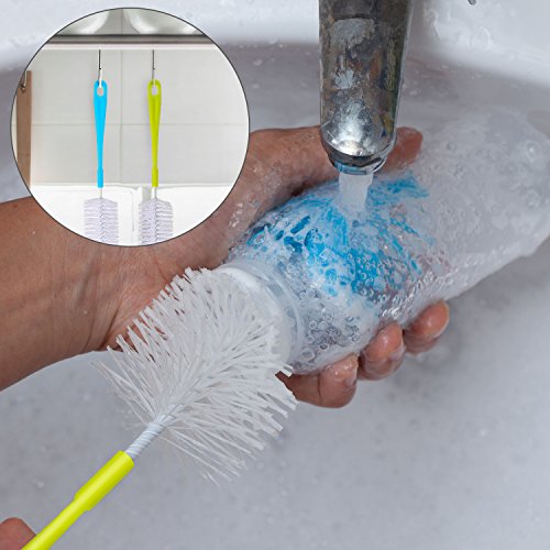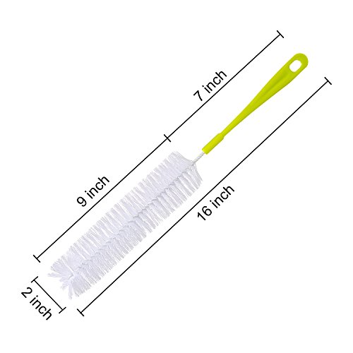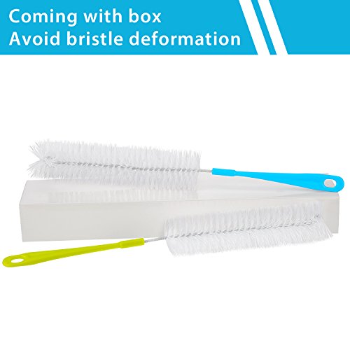- Long bottle brush: approx. 16 inch long and 2 inch diameter brush easily reach the bottom and wash the inside area of various bottles, especially good for cleaning the bottles with narrow necks