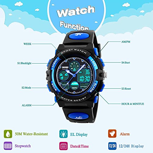 WATERPROOF FOR DAILY USE: 50M Water Resistant, feel free to wear the sport outdoor digital watch when kids are showering, swimming.
