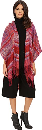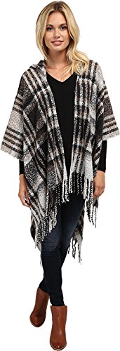 This ruana offers a fun contemporary plaid made of soft polyester. It has a bonus of a hood that is perfect when the cold wind blows