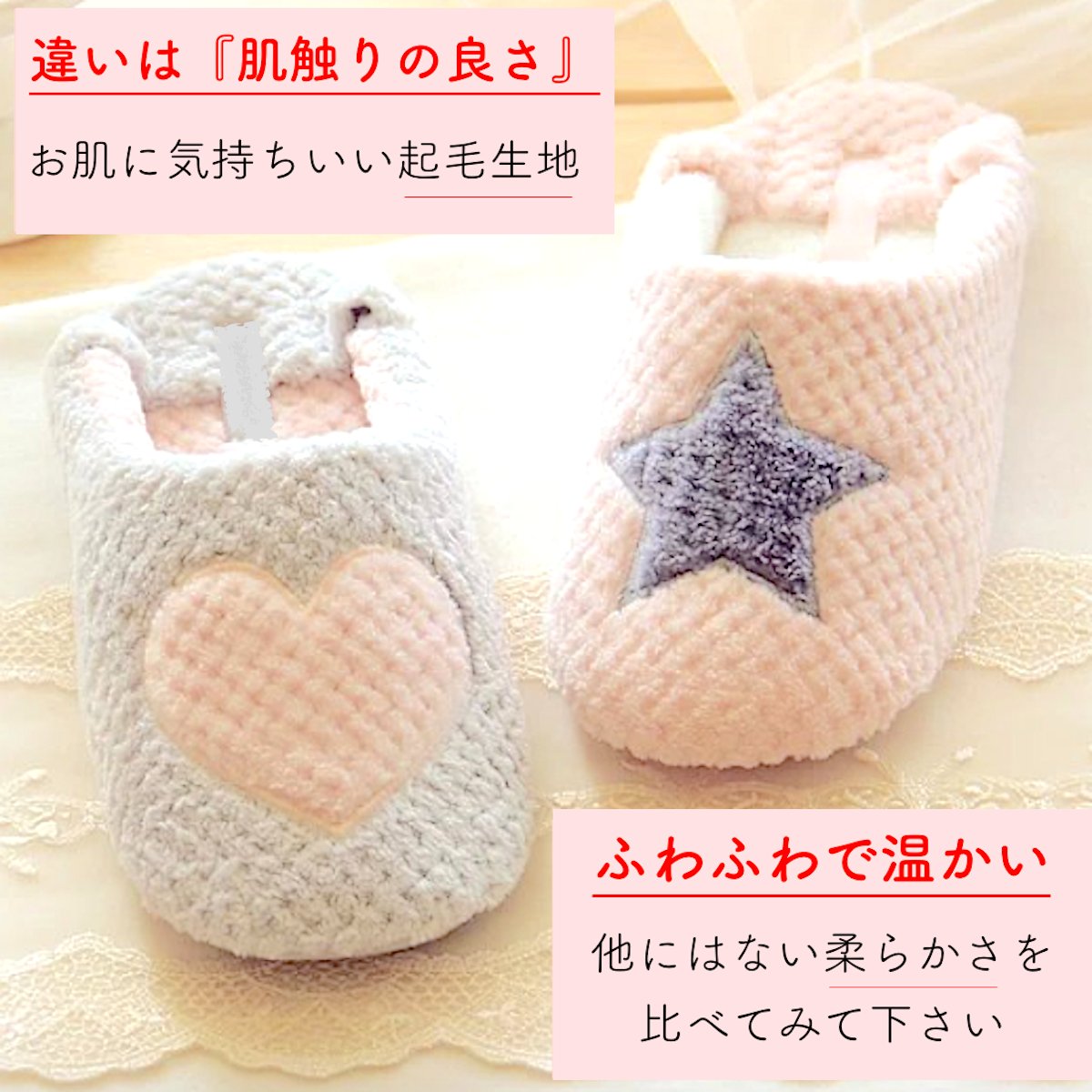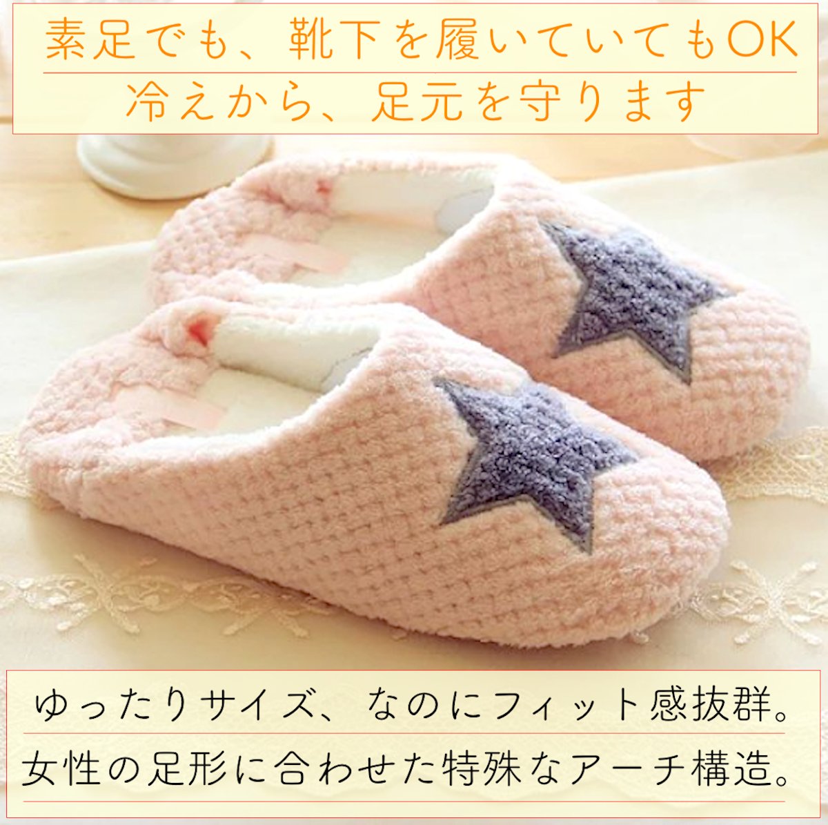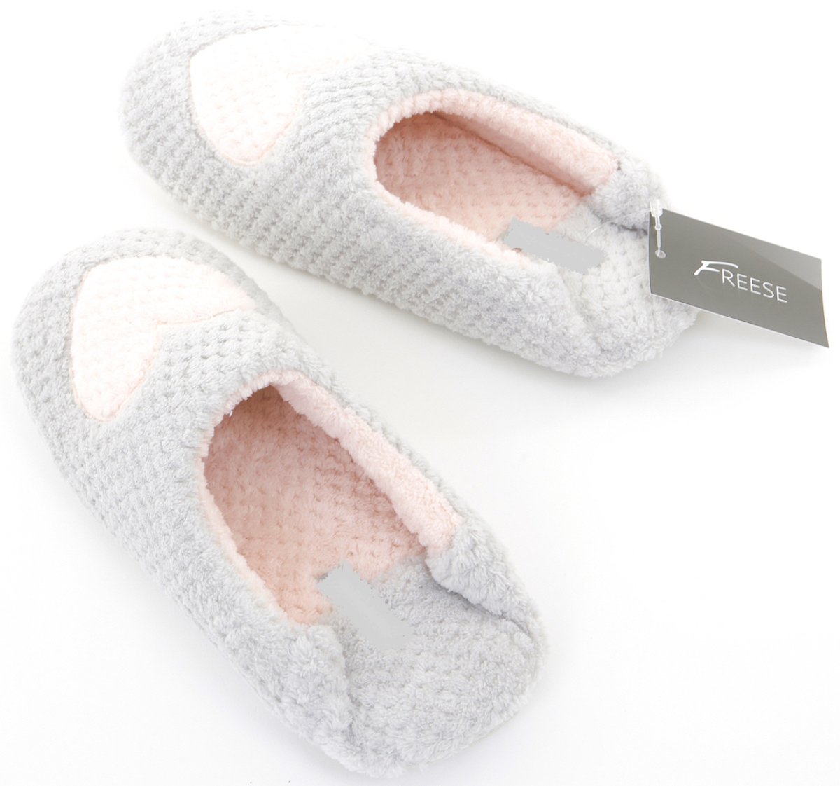 Features of FREESE's room slippers are "soft touch" and "warm texture"