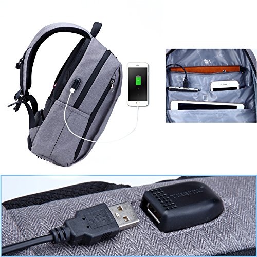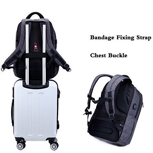 -. Feature : INNOVATION----External USB Charging Port to handily charge phone, tablet, etc. Now it is time to say goodbye of carrying power bank in your hand when charging phone. / DIMENSION----45*30*13 cm/17.7*11.8*5.1 inch. Laptop Slot: 44*28 cm/17.3*11 Inch, hold up to 15.6-16 inch laptop. / MULTI-COMPARTMENT----2 front pockets with middle and left zipper (including key bucket ) + 1 main compartment + 1 back laptop compartment and 1 anti-theft waist pocket +2 side pockets. / DELICATE DESIGN----Thickening back pad & two adjustable S-shape straps & chest buckle reduce pressure of shoulder & back bandage allows the backpack to be freely fixed on the suitcase. / MATERIAL----Made of durable water resistant & tear-proof nylon fabric, guarantees the quality of BACKPACK--Perfect for Businessmen, Traveler, College Students and so on.
