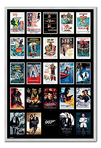 -. Title : James Bond 007 Movie Posters Including Spectre Poster Magnetic Notice Board Silver Framed - 96.5 x 66 cms (Approx 38 x 26 inches)