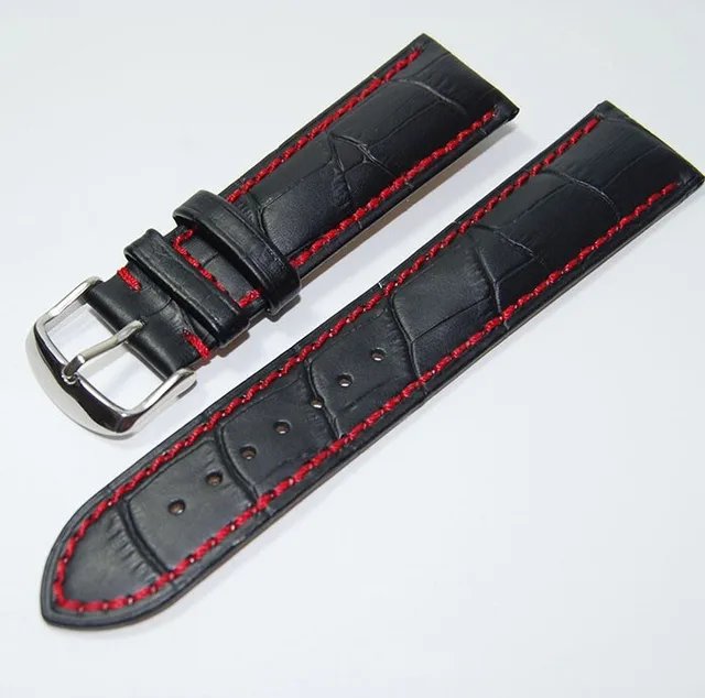 20 mmNew 블랙 정품 가죽 손목 시계 밴드 스트랩 팔찌 레드 스레드