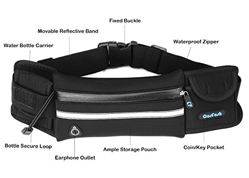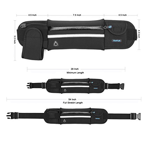 Lightweight Running Belt: Cosfash runner belt,made of waterproof washable neoprene material with special-shaped water resistant zipper,prevents ingress of water.Your belongings will stay safe and dry if you sweat a lot or run in bad weather,and you don't have to worry about the objects in the pockets get wet.And due to its lightweight feature,you can hardly sense that you have the runners belt on.