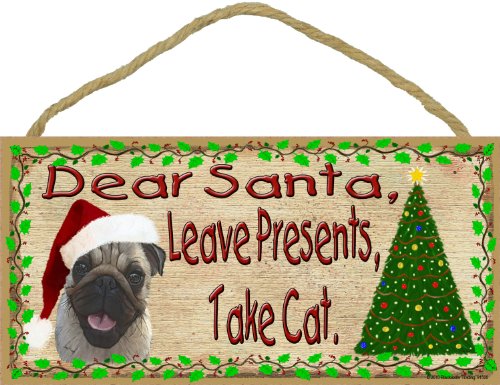 Dear Santa Leave Presents Take Cat Pug Christmas Dog Sign Plaque 5"x10"