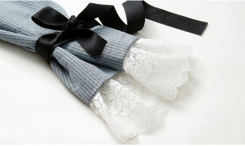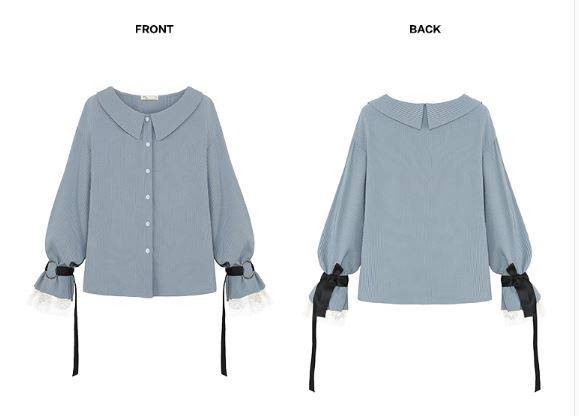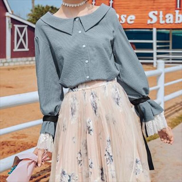 ふわっとした袖をきゅっと締めたリボン&袖口から見えるレースがかわいい長袖ブラウスです。