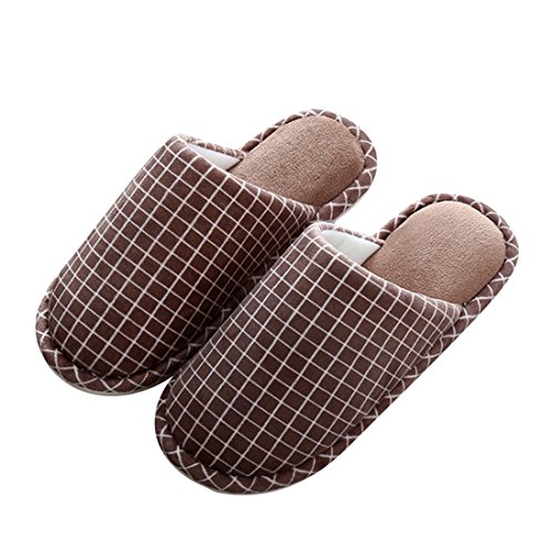 Binding : Apparel Product Description HIGH QUAILTYCOMFORTABLE: These slippers are made of high-quality, thick and super comfortable cotton fabric on the upper and flannel lining with high density flexible memory foam insole, ultra skin-friendly, breathable, provide maximum the comfort and relaxation of your feet after a long day of hardworking, suitable for spring, summer and autumn. ANTI-SLIP SOLES: These slippers designed with environment friendly waterproof PVC rubber soles offers anti-slip protection, durable and lightweight, makes each step feel like walking on cloud with these high-density sponge-lined insole. Slip-on style design helps your tired feet breath and makes it easy to put on and take off. You can rest assured to wear on wood or tile floors.They are really perfect for indoor use. DESIGNCOLOR OPTIONS: The slippers designed with classic elegant plaid pattern, available in different colors to choose your favourite colors. Some difference on color due to monitor display, please understand. PERFECT GIFT CHOICE: Suitable for using in bedroom, living room, office, apartment, hotel and other daily use.Perfect Christmas, birthday, New Year, Mother's Day, Father's Day, Valentine's Day, Holiday gift for your friends, lovers, mother, father, boyfriend, girlfriend, family and so on. PACKAGE: One pair of Slippers 0