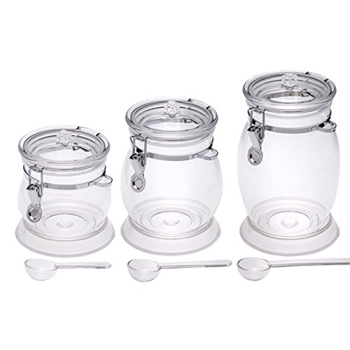 -. Feature : Material: Acrylic / Dimension: 7 3/4"H, 6 1/4"H & 5"H / Dimension: 54 oz., 42 oz. & 25 oz. / 3-PC Canister With Spoon / Wipe clean with a damp cloth