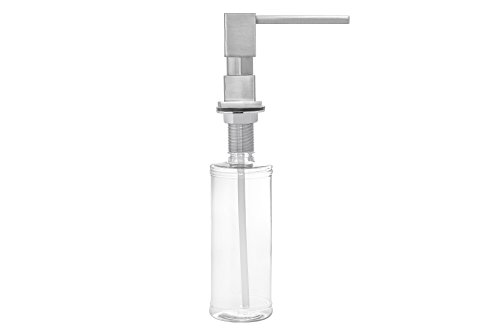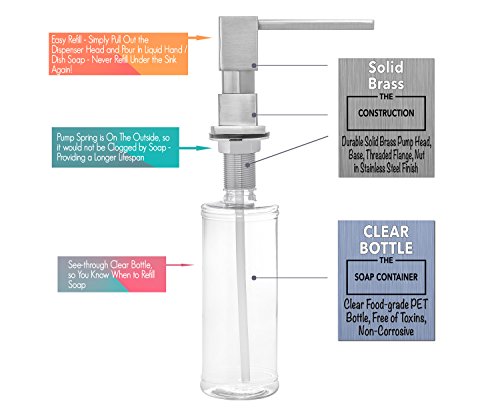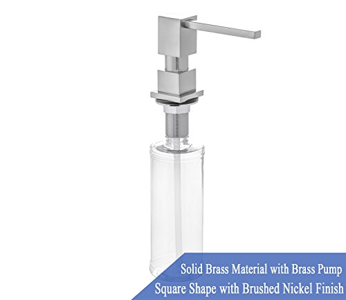 Built in Square Solid Brass Pump Deck Mount Modern Hand / Dish Soap Dispenser Stainless Steel Brushed Nickel – All Metal Construction - 13 OZ Capacity Bottle – Easy Refill From Top