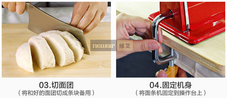 After use, if there are some residue dough stuck in the maker, leave it aside and let the residue dough dry up. Shake the maker, the dried dough bits will drop out. You can use toothpick to clear those still stuck in the maker. Use drier dough to avoid dough being stuck in the maker.