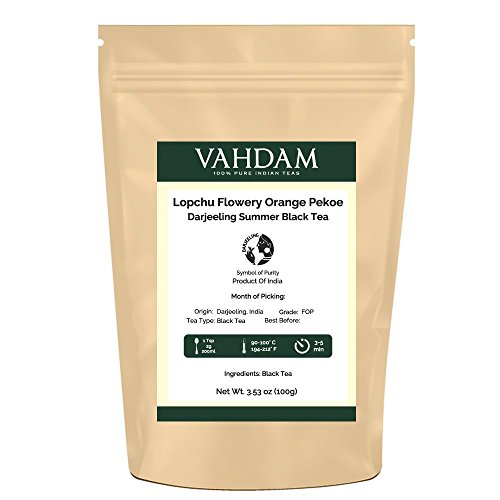 -. Binding : Grocery -. Brand : Vahdam Teas -. Feature : Garden Fresh 2016 Harvest Darjeeling Tea / 100% Certified Pure & blended Darjeeling Tea. Packed in Double Air Sealed Zipper Pouch to preserve freshness & aroma. A very fine and flavoury grade of Darjeeling tea loved for its unique and rich flavor. Our FOP Darjeeling blend is selected from only particular areas of the tea growing region in Darjeeling district. / PURE & UNBLENDED - 100% Pure Unblended Indian Tea Certified by the Tea Board of India / DIRECT FROM INDIA - Based in India, Vahdam Teas are procured Direct from Farmers & Shipped Worldwide / Brought you to by Vahdam Teas from India -. IsAdultProduct : 0 -. PackageQuantity : 1 -. ProductGroup : Grocery -. ProductTypeName : GROCERY -. Title : Darjeeling Lopchu Flowery Orange Pekoe Black Tea