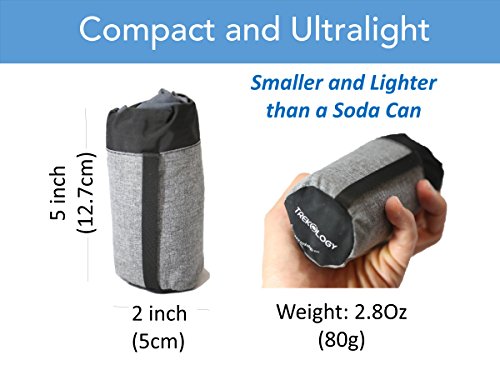 THE MOST COMPACT ULTRALIGHT INFLATABLE CAMP PILLOW ON THE MARKET – folds to the size of less than a soda can (only 5 x 2 inches!), and inflate to a comfortable head or lumber support. This backpacking pillow can be easily carried in your backpack or pocket for easy access! Weighs only 2.75 oz (78g) - an ultralight camping gear for backpacker & all!