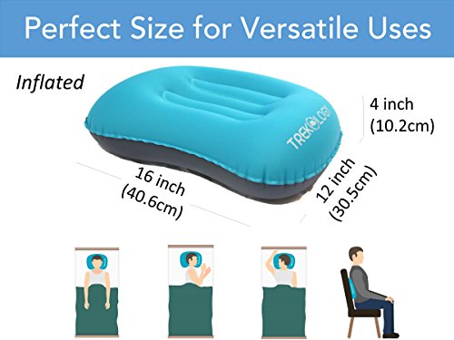Trekology Ultralight Inflating Travel / Camping Pillows - Compressible, Compact, Inflatable, Comfortable, Ergonomic Pillow for Neck & Lumber Support and a Good Night Sleep while Camp, Backpacking