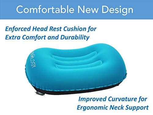New! ENHANCED COMFORT and DURABILITY: Enhanced design and layers for head support that is constructed from strong, durable, water-resistant, elastic TPU fabric. Whether you're leisurely vacationing with your family, camping for the weekend, or backpacking the mountains - this is the best air travel pillow!