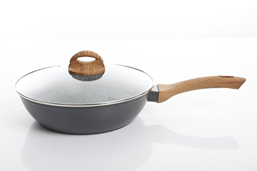 Add a durable and stylish option to your cookware collection with the the Oster Collington Covered Saute Pan Non-Stick . This set is made of heavy gauge forged aluminum, provides excellent quality at a value price. It includes one 10" saute pan with a tempered glass lid and soft grip wood like bakelite handles that remain cool while cooking. It features a matte grey exterior and a granite nonstick interior. The Collington is gas, electric and ceramic stovetop safe.Feature