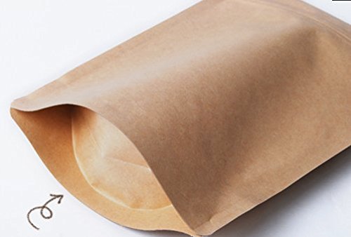 Quality Laminated Material Construction: Natural Kraft Paper, PET (polyethylene terephthalate) +Aluminum +PE (polyethylene) FDA and USDA compliant. The most inner area is PE, which is perfectly suitable for packaging foods and herbs. Effectively maintains Taste and Scent
