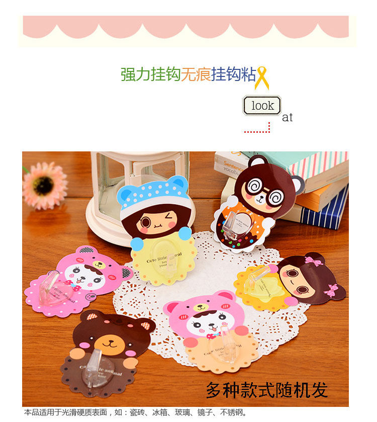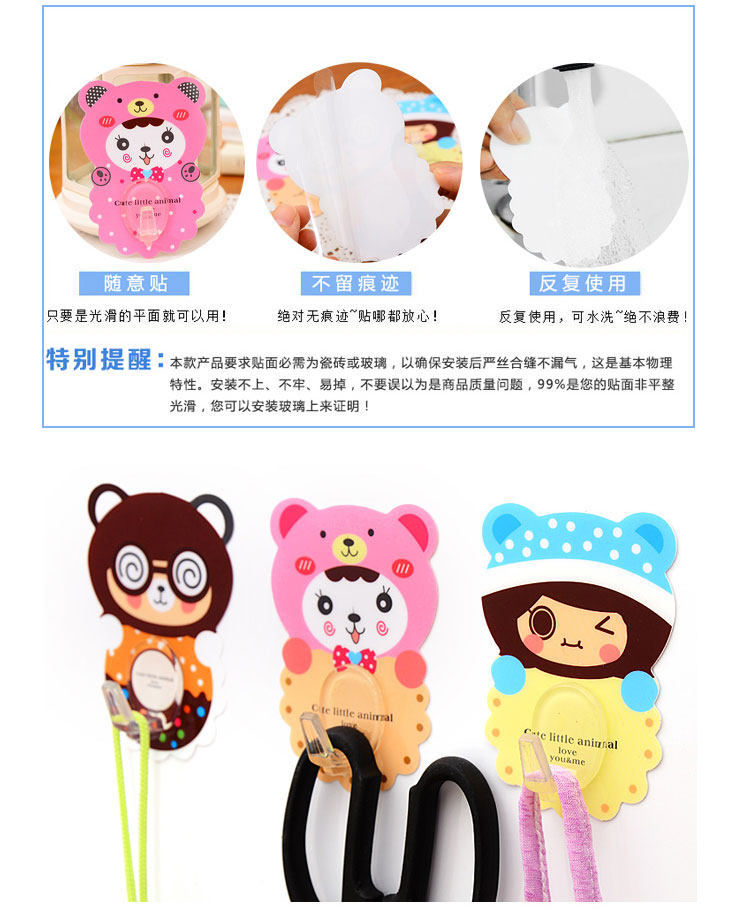 品名:卡通动物魔力无痕挂钩 强力吸壁粘钩