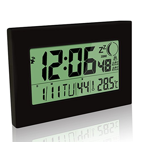 HeQiao HD Large LCD Home Kitchen Decor Digital Alarm Clock for Seniors Modern attractive 12/24 hour bold letter non-glare oversized battery operated Grandfather clock for Memory Loss Dementia Alzheimer Unique elegant trendy Digital large face decorative Wall Clocks for Home Office Classroom living dining room bathroom Classic silver simple antique giant atomic non ticking desk clock day week month date temperature snooze rectangular Travel Alarm Clocks for Indoor Outdoor Contemporary stylish quiet vintage novelty wall hanging free standing rustic country house LCD Temp digits projection Clock with seconds Unusual Silent bright big number easy view table clock crystal-clear temp display children kids Room Decor Clock for visually impaired