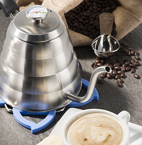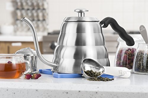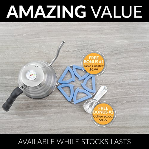 ➡️ AMAZING VALUE: Includes 1 pour over coffee kettle, 1 silicone table coaster (for counter top protection), and one of our signature coffee scoops, at an all-time low, introductory price. Great quality and great value. What more can you ask for?