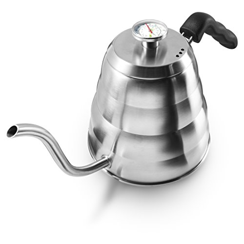 - Built-in thermometer keeps your water at just the right temperature for godlike drip coffee