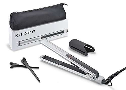 Title : Lanxim Digital Tourmaline Ceramic Flat Iron Hair Straightener with Heat Resistant Travel Bag and Protective Plate Guard Holder, Silver
