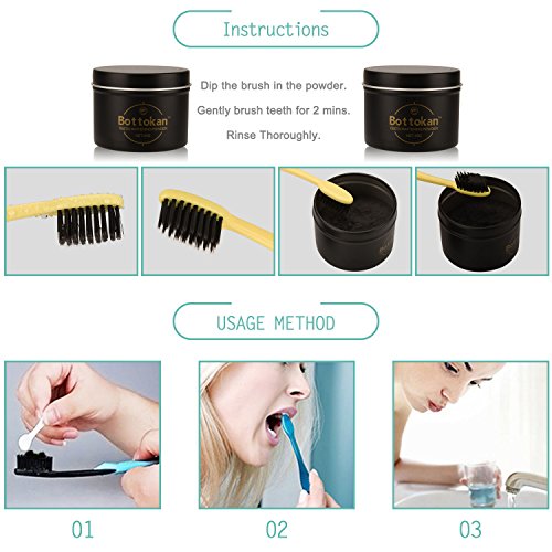 With a small spoon, or a pinch of your fingers, apply a small amount of powder to the palm of your hand. Apply a moist tooth brush, and brush for two minutes. Afterward, brush again to remove remaining powder from teeth (using water or your normal toothpaste). Use once per day for 30 days for best results.