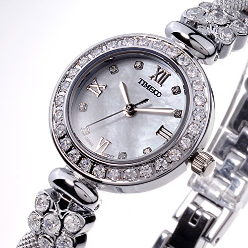 Time100 Women's Watches Bracelet Diamond Round Dial Watch Ladies Fashion Dress Watches Wrist watches for women (Silver-2)