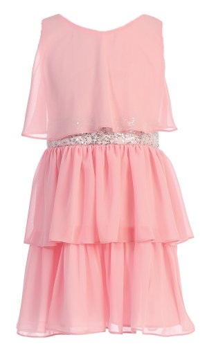 Sequin Belted Sleeveless Triple Tiered Chiffon Party Dress