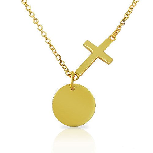 -. Binding : Jewelry -. Brand : Anguss Fashion Jewelry -. Department : girls -. Feature : Length (inches):18 / The pendant showcases an elegant design accented with a Latin cross-shaped charm and a round charm shining with the highly polished finish. The necklace is crafted of yellow gold-toned sterling silver. Get it for your loved one or treat yourself for a classic timeless style. The delicate yet durable adjustable link chain measures 16.00in - 18.00in long and locks with a sP.R.Ing ring type of clasp for extra security. -. Label : Anguss -. Manufacturer : Anguss -. Model : 271408063327 -. MPN : 271408063327 -. PartNumber : 271408063327 -. ProductGroup : Jewelry -. ProductTypeName : FASHIONNECKLACEBRACELETANKLET -. Publisher : Anguss -. Studio : Anguss -. Title : Gold Plated Circle Latin Cross Religious Pendant Necklace