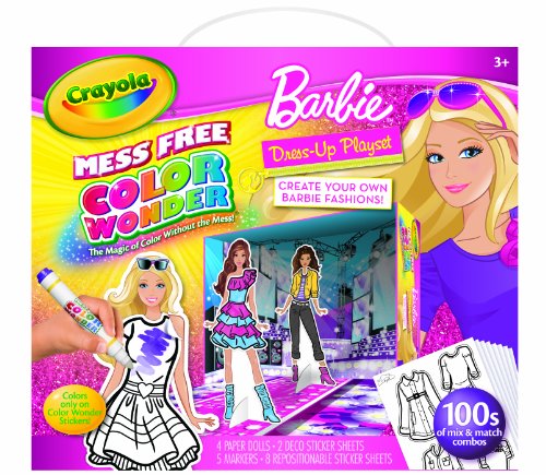 -. Feature : Magical color without the mess paired with Barbie Fashion! / The box opens up in to a playful fashion show stage! / Decorate with stickers! / Includes 3 different Barbie cardboard paper dolls w/stand! / Mix and Match dolls over and over again!