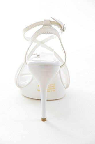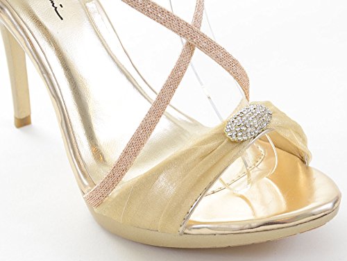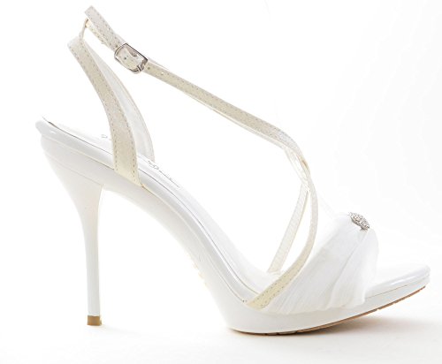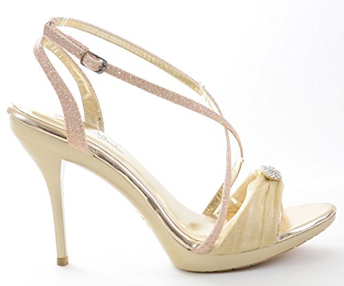 Product Description Compliment your looks with these criss cross strapped sandals that make you look fabulous. Featuring vegan leatherette upper, fabric upper with faux diamond decor, open toe, criss cross and ankle strap construction, mid stiletto heel, and completed with extra padded insole for all day comfort, an unusual edgy and strappy design that will turn heads and a insole for maximum comfort. 0