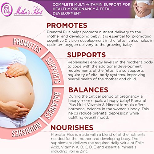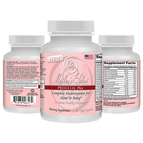 -. Binding : Health and Beauty -. Brand : Mother's Select -. EAN : 0804879563174 -. Feature : PRENATAL PLUS; forget cheap prenatal multivitamins and mineral supplements, our Prenatal Plus is a premium prenatal formula delivering optimal levels of essential vitamins and minerals, to prevent deficiencies, for a healthy pregnancy! / WIDE SPECTRUM; contains a wide spectrum of essential prenatal vitamins and minerals to meet the enhanced nutritional needs of pregnant mothers, including iron, folate and calcium to support healthy development! / LONG LASTING SUPPLY; tired of constantly running out of essential supplements? Each bottle of our Prenatal Plus contains 90 capsules of our one a day prenatal vitamins, for a long lasting 3 month supply, eliminating constant reordering! / GENTLE VEGGIE CAPSULES; our natural Prenatal Plus is provided in easily consumed, gentle veggie capsules for quick, easy absorption without irritating! / MANUFACTURED IN THE USA; manufactured in the USA in a GMP certified facility for guaranteed purity and quality in every bottle! Click the Orange Button to order now! -. Label : Mother's Select -. Manufacturer : Mother's Select -. PackageQuantity : 1 -. ProductGroup : Health and Beauty -. ProductTypeName : HEALTH_PERSONAL_CARE -. Publisher : Mother's Select -. Studio : Mother's Select -. Title : Prenatal Vitamins and Minerals - Mother's Select Pre-Natal Plus - Long Lasting 90 Capsule 3 Month Supply - With Iron, Folate and Calcium - Gentle Veggie Pills -. UPC : 804879563174