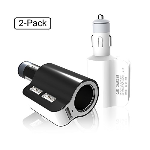 -. Feature : <2 pack > 2 In 1 USB CAR CHARGER (White & Black): 5V USB charging ports with 12V lighter socket for simultaneous powering up 3 mobile devices with USB and an additional device with a CLA adapter such as GPS or dash cam. / Cigarette Lighter Sockets: the 12V/24V cigarette lighter sockets (DC outlets) provide a total power of up to 120W, perfect for simultaneously use of multiple appliances including GPS, dash cam, Tomtom, SatNav, seat heater, cooler box, DVD player or other portable appliances in your vehicle / 3.1A 3 USB ports to charging iphone ipad and other devices at the same time. Soft LED light helps locate ports in the dark without any distraction. / Universal Compatibility: Compatible with all USB powered devices including Quick Charge 2.0 & Apple phones & tablets / Package Contents: 2 Pack Car Chargers(White & Black), 24 Month Warranty