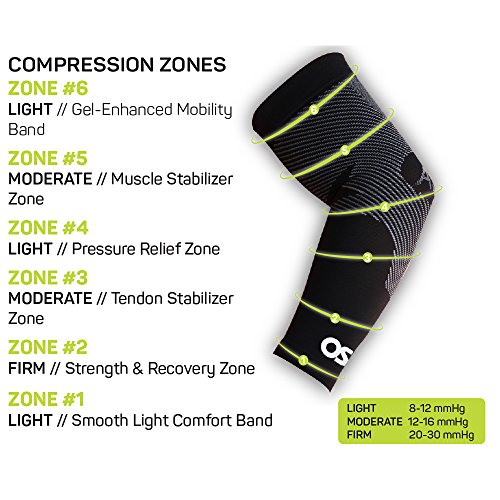 OS1st AS6 Performance Arm Sleeve (Two Sleeves) supports the elbow and arm, reduces muscle fatigue and protects from sun damage and inclement weather (Black, Medium)