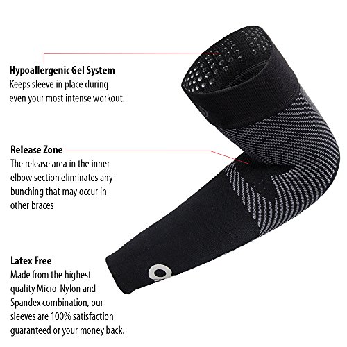 OS1st AS6 Performance Arm Sleeve (Two Sleeves) supports the elbow and arm, reduces muscle fatigue and protects from sun damage and inclement weather (Black, XLarge)