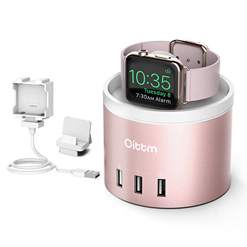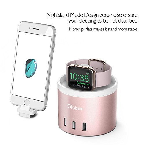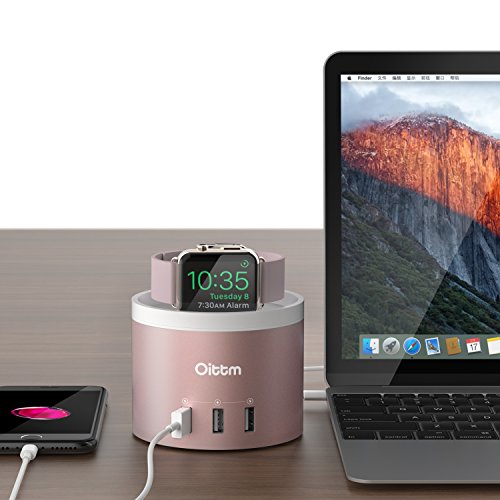 Oittm Apple Watch Series 2 Charging Stand, [Nightstand Mode] [3 in 1 Bracket Power Charger ]4-Port USB Charging Stand with Phone Holder for iPhone 7, 7 Plus, Apple Watch, Nike+ (Rose Gold)