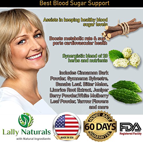 ★ PROMOTES HEALTHY BLOOD SUGAR - Keep Blood Sugar Stable & Avoid Crashes - The unique blend of 20 blood sugar herbs and nutrients in Lally Naturals Blood Sugar Support pills help to maintain stable glucose levels in the bloodstream - Our blood sugar optimizer works to prevent high and low sugar levels, which are accompanied by symptoms such as fatigue, brain fog, irritability, anxiety, and excessive hunger.