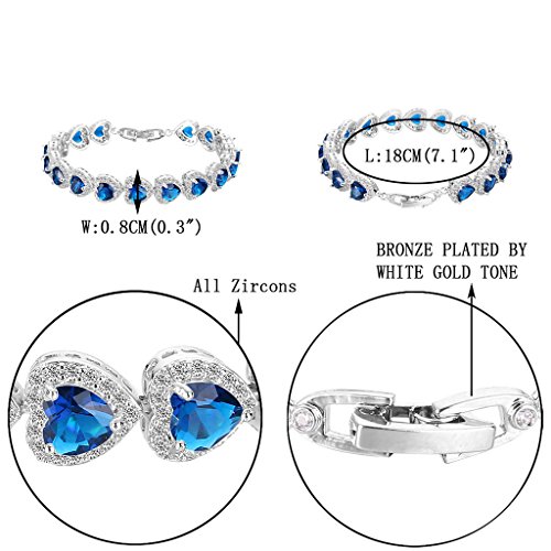 -. Binding : Jewelry -. Brand : EVER FAITH -. Department : womens -. Feature : [!]EVER FAITH is a US registered trademark and Ever Faith Jewelry(former name: Kiss Bling) is its only owner. We will pursue legal action against trademark infringement in case of UNAUTHORIZED sale or resale. / Cubic zirconias are pronged to the jewelry item to secure from loosing. A prong setting is one component of what is known in the jewelry business as a head, a claw-shaped type of binding (typically 3, 4, or 6 individual prongs per head) that is welded or soldered to a jewelry item in order to mount (or set) a stone to the jewelry item. / Length: 18cm(7.1"). Width:0.8cm(0.3"). Weight: 17g. / Brass Metal is much smoother and will protect your skin from rubbing. You will feel comfortable when wearing it. Also, jewelry made by brass metal has light weight. / Wrapping: Come with a gift box or favor bag (depend on product size). If you need assistance please contact us. -. Label : EVER FAITH -. Manufacturer : EVER FAITH -. Model : N07008-2 -. MPN : N07008-2 -. PartNumber : N07008-2 -. ProductGroup : Jewelry -. ProductTypeName : FASHIONNECKLACEBRACELETANKLET -. Publisher : EVER FAITH -. Studio : EVER FAITH -. Title : EVER FAITH® Silver-Tone CZ September Birthstone Gorgeous Heart-Shaped Roman Tennis Bracelet Sapphire-color